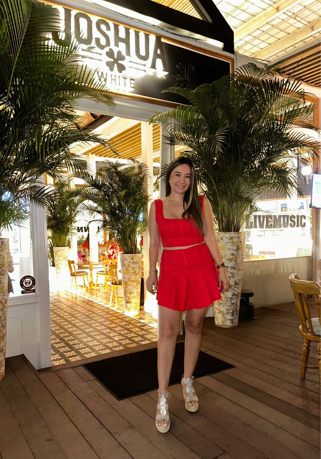 FALDA SHORT EN LINO CON PRENSES, PRETINA ANCHA Y CIERRE ATRÁS.